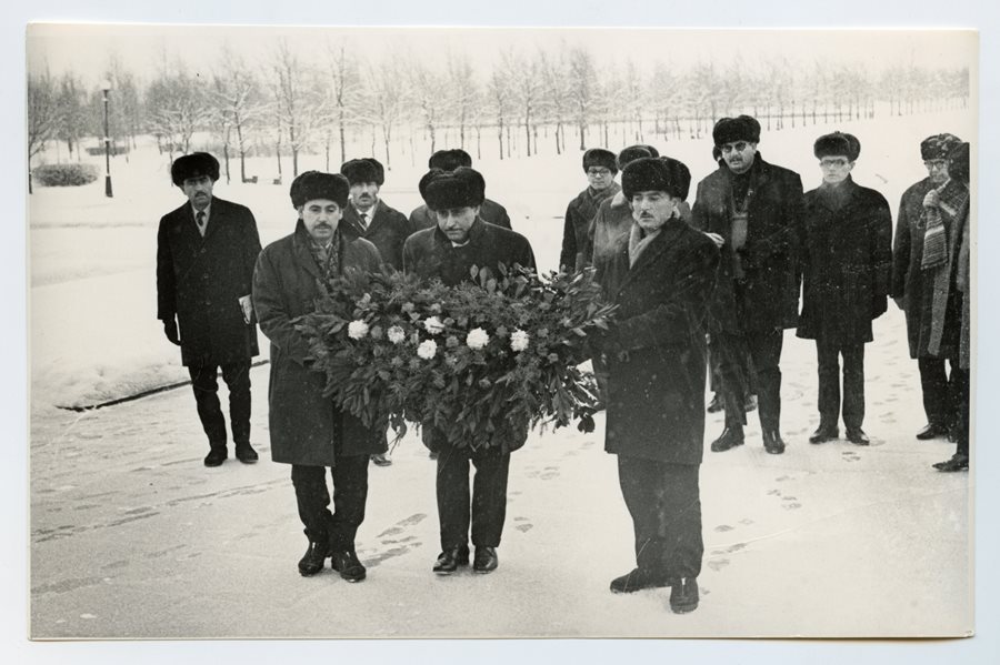 An archive photograph of Maen’s grandfather (center) laying a wreath of flowers at Vladimir Lenin's tomb with a delegation from the Baath party in 1970.