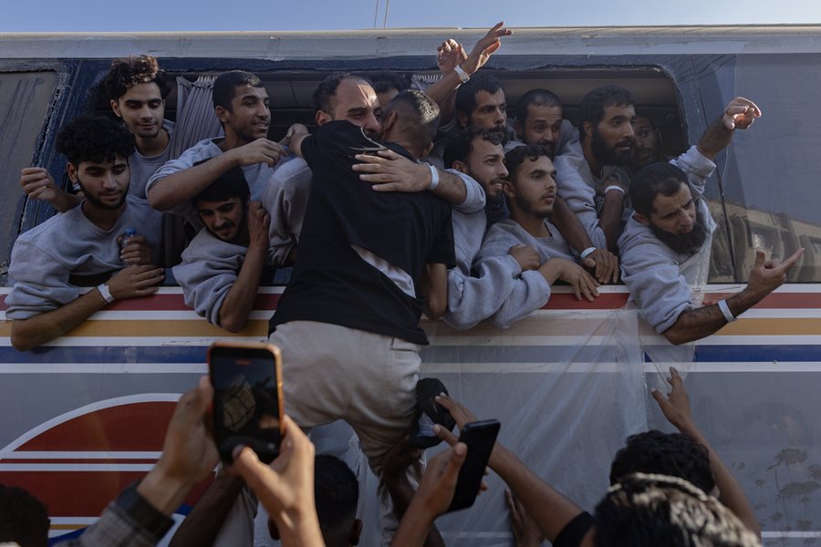 Palestinian prisoners arrive at Nasser Hospital after being released from Israeli prisons. Khan Yunis, 13 October 2025. For the New York Times.