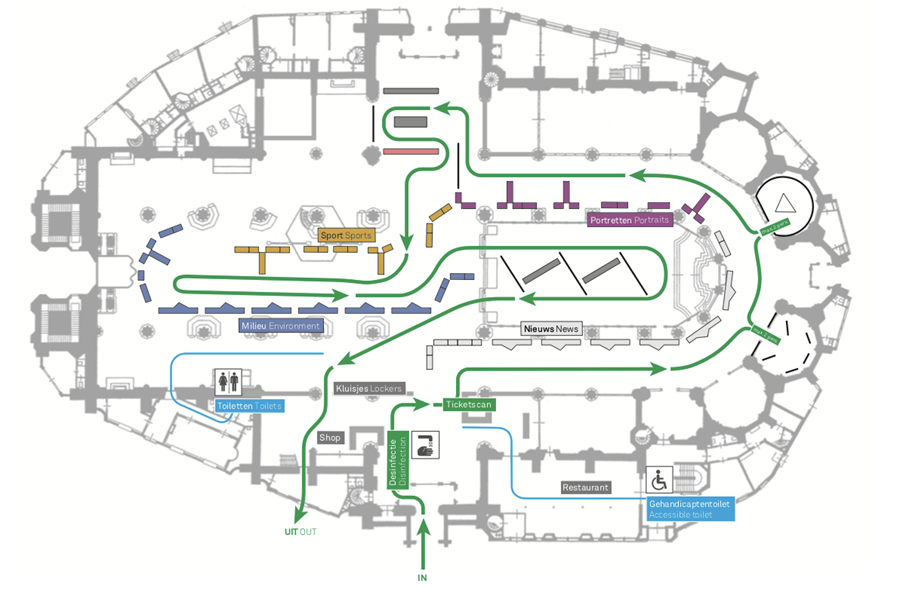 Special measures, such as floor marking, adjustment of the exhibition route to maintain 1.5 m distance between visitors, and automatic sanitizer stations have been put in place.